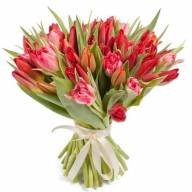 21 красный тюльпан, перевязанный лентой, представляет собой шикарную композицию «Алое солнце». Красный цвет означает пылкую любовь, страсть и значимость. Такой букет идеально подойдет для подарка любимой женщине. Но и друзья или коллеги непременно обрадуются изысканным цветам, тюльпаны источают шикарный запах, который поведет за собой к природе.